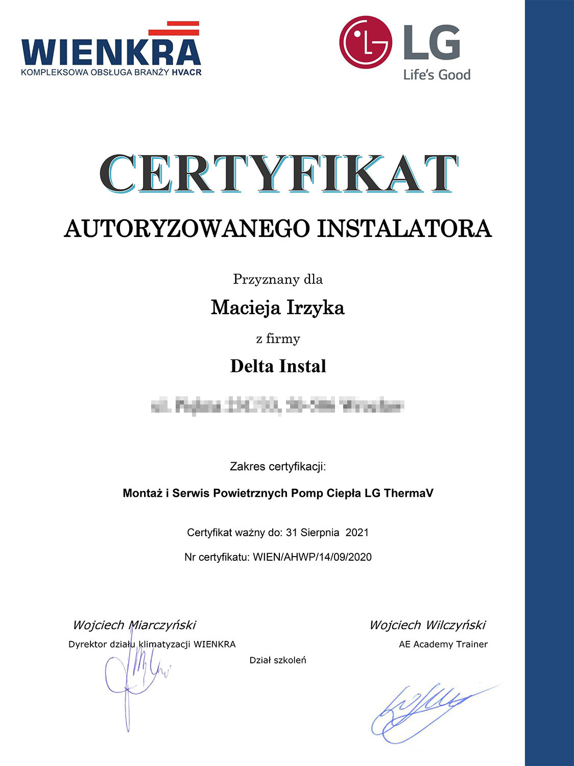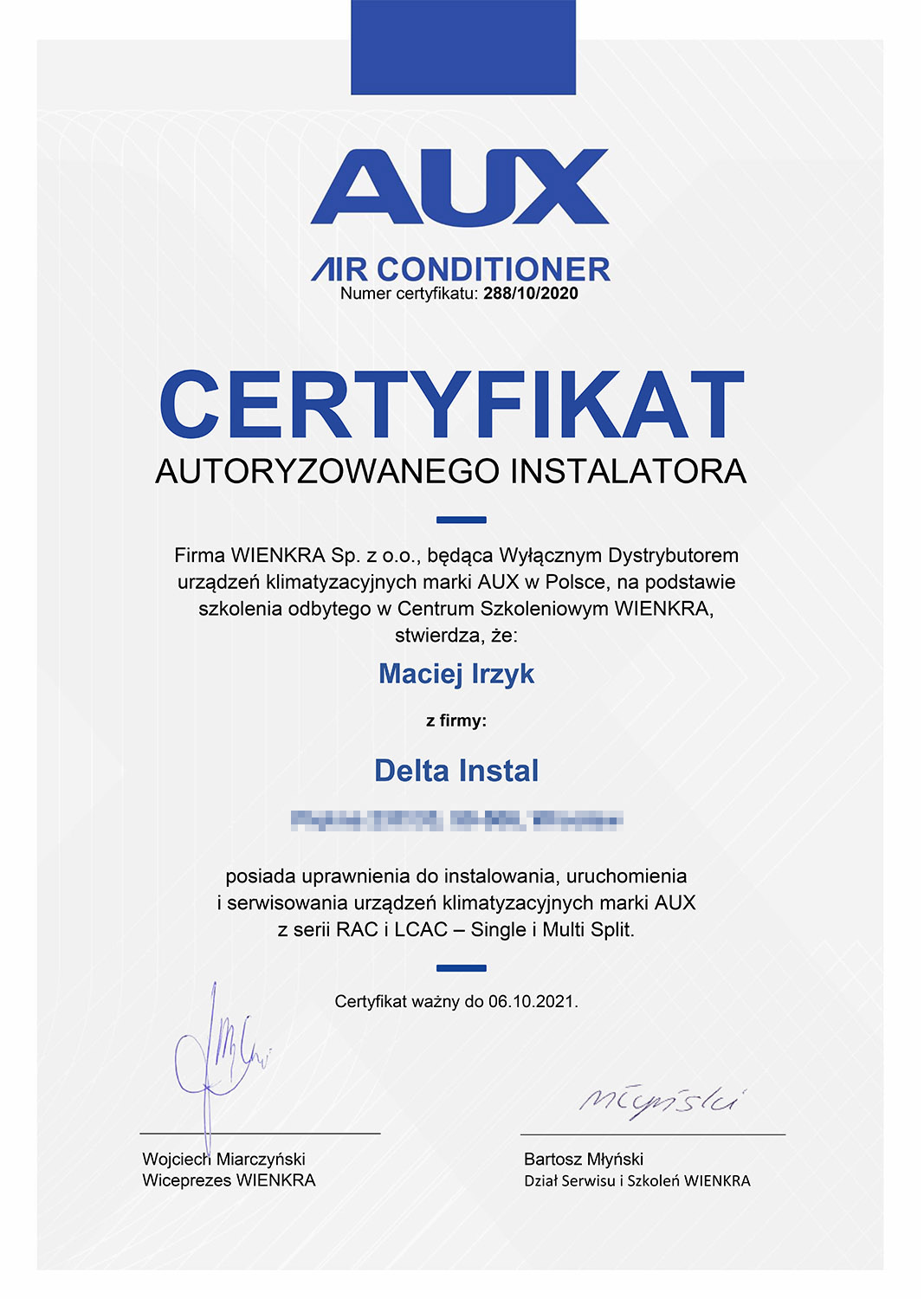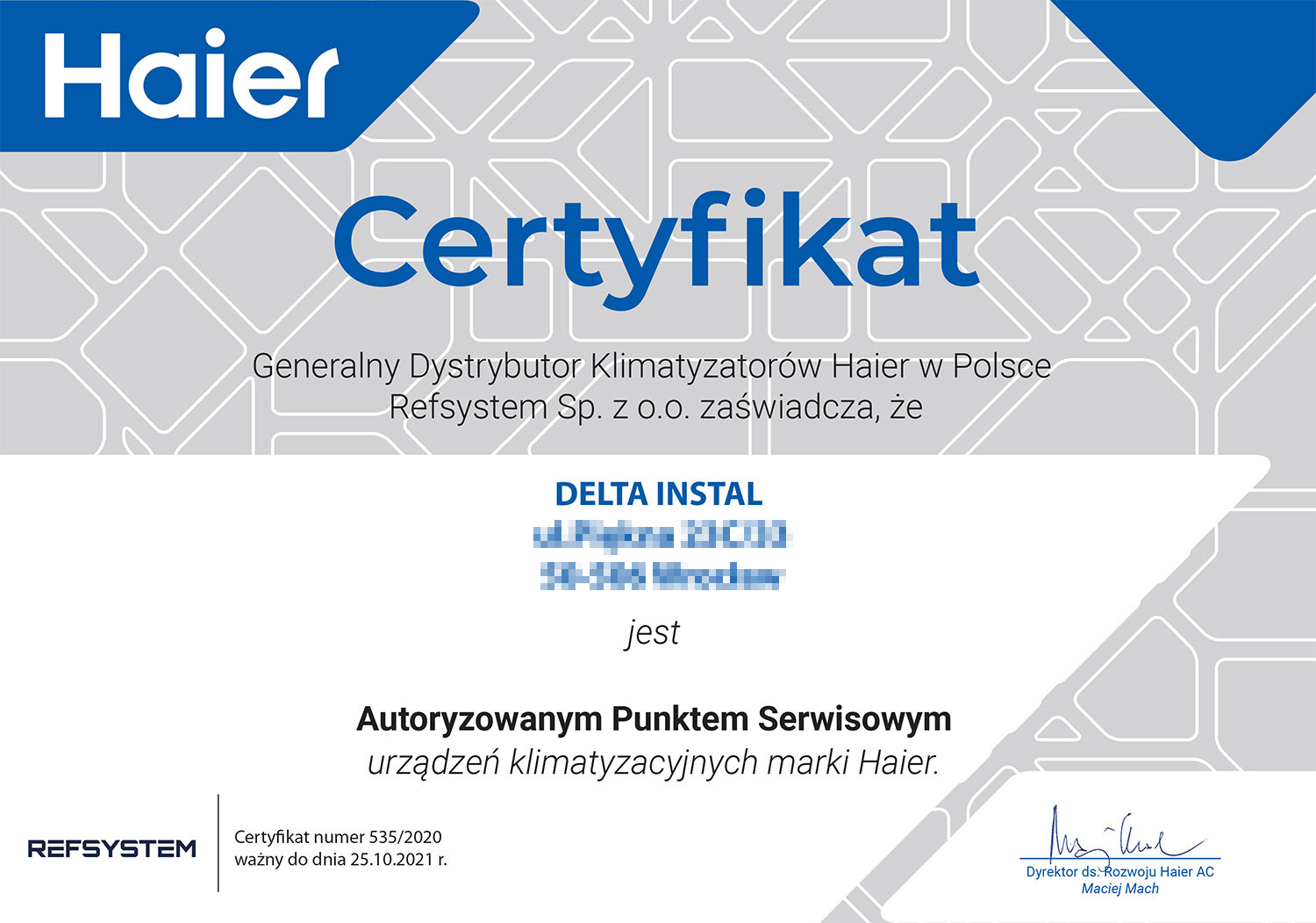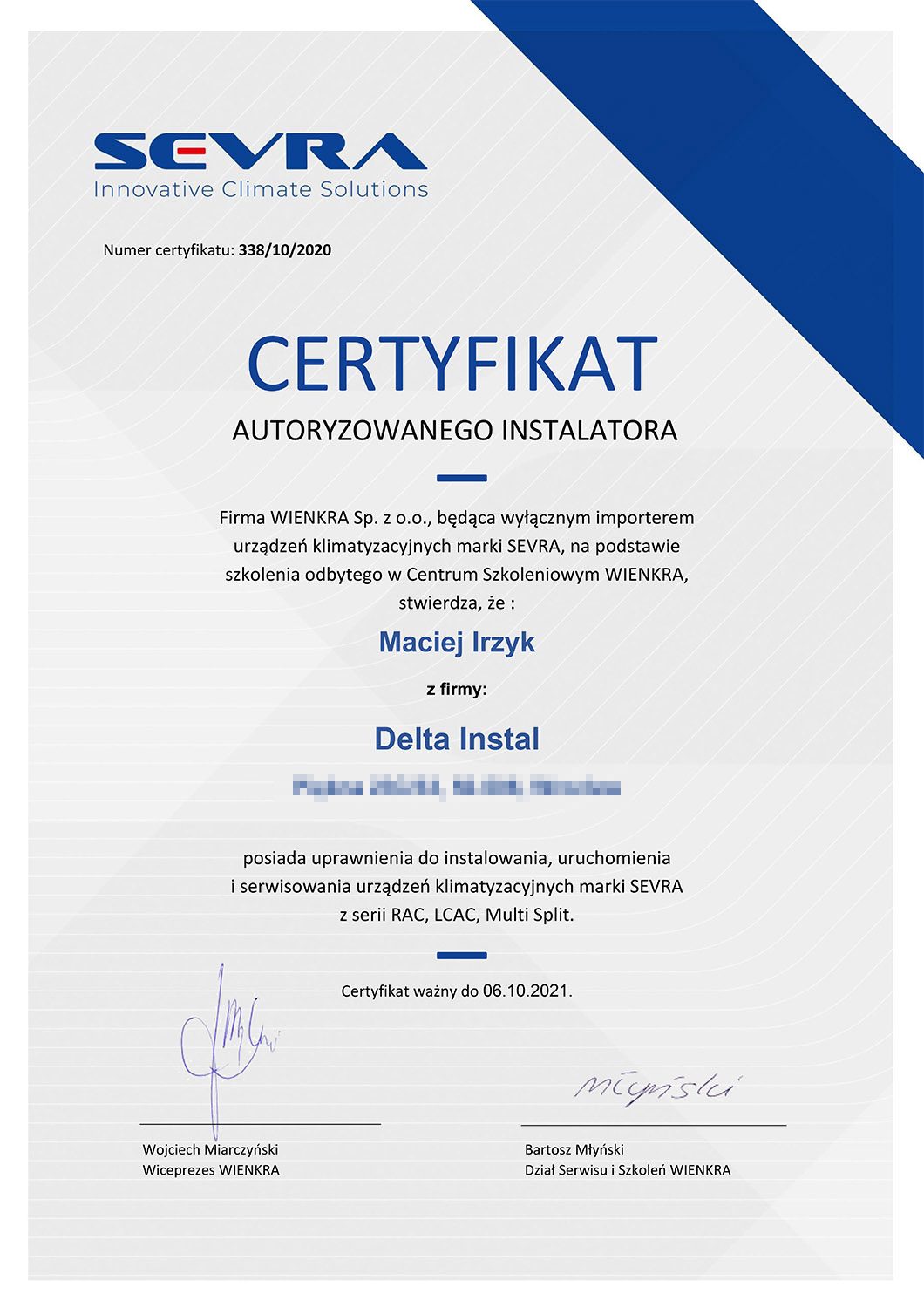 Znam również fach od strony zaplecza. Własnoręcznie wykonałem wiele instalacji klimatyzacji w oparciu o systemy Split, Multisplit, VRV. Odbyłem wiele szkoleń różnych producentów z branży klimatyzacji i chłodnictwa, przeczytałem mnóstwo literatury fachowej. Właśnie te doświadczenia pozwalają mi spojrzeć na wykonywaną pracę z większą precyzją.